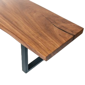 Transform your dining room with the Saman Bench. Its unique combination of live edge wood and high quality finishes offers a sophisticated and functional addition to any home. Custom live edge furniture, this table brings luxury and elegance to your space.
