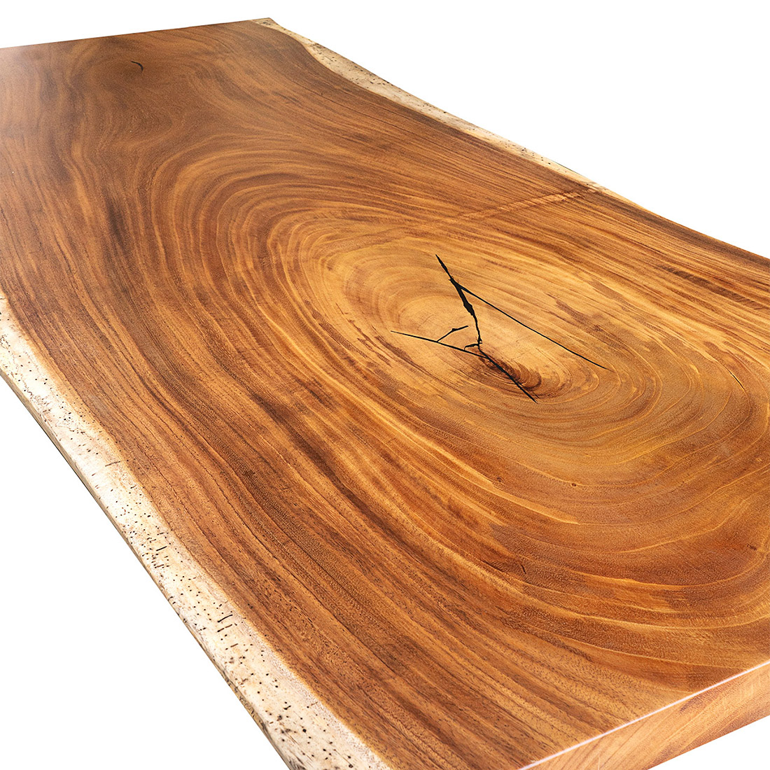 This dining table highlights the natural beauty of the Saman or Guanacaste wood with a live edge design.